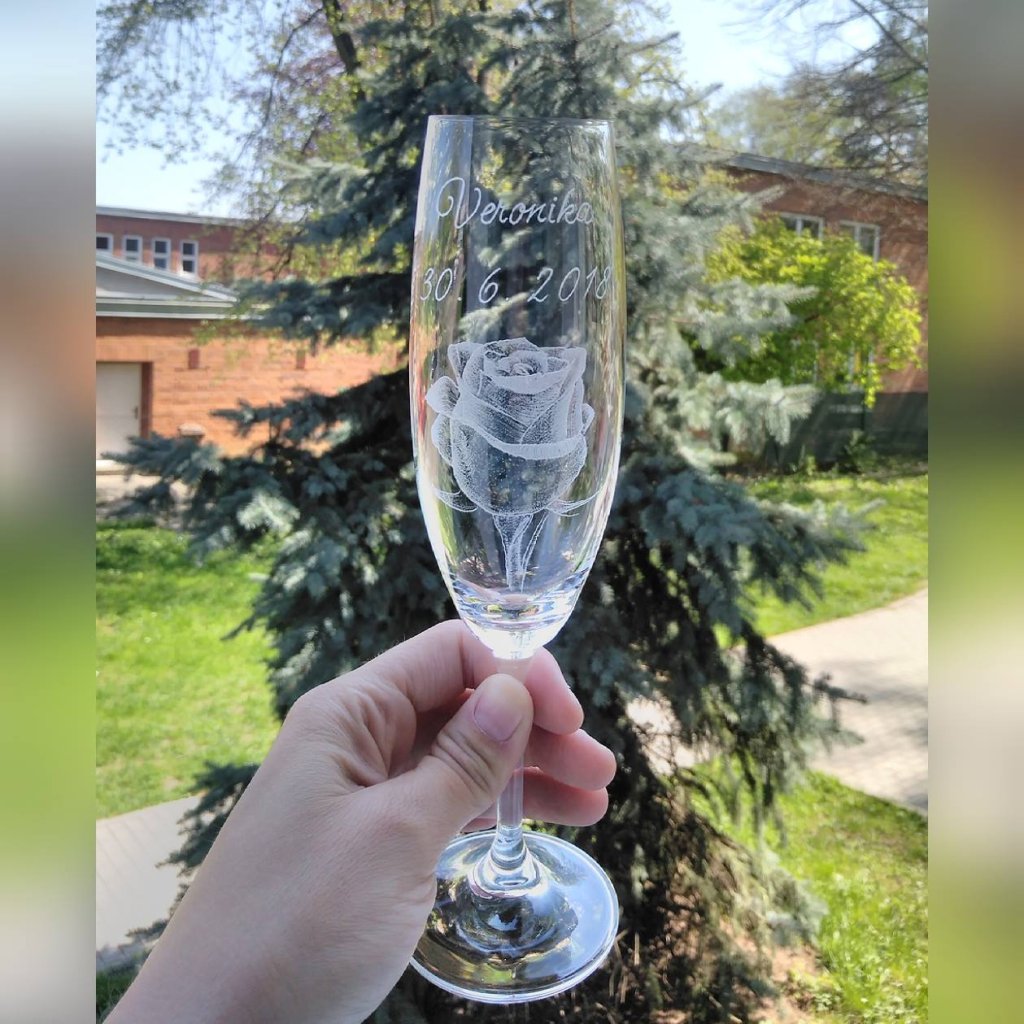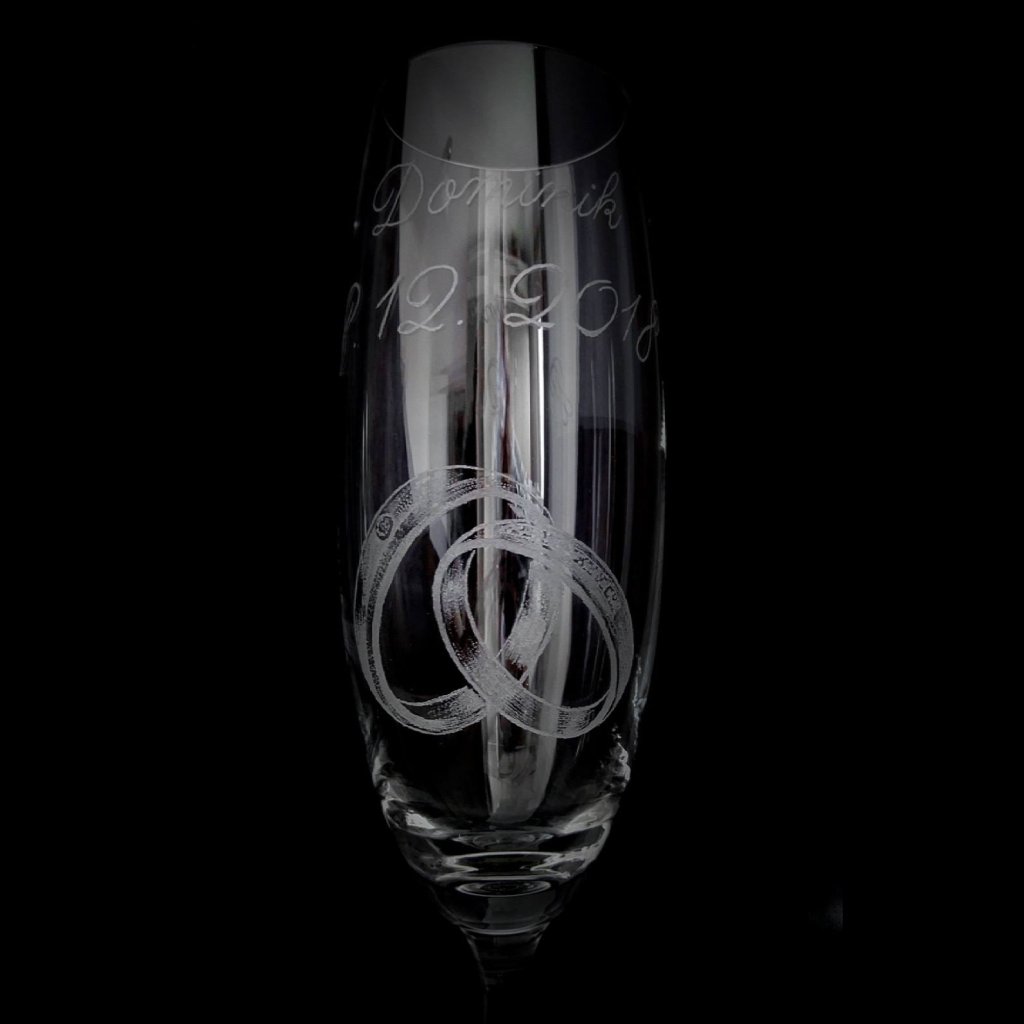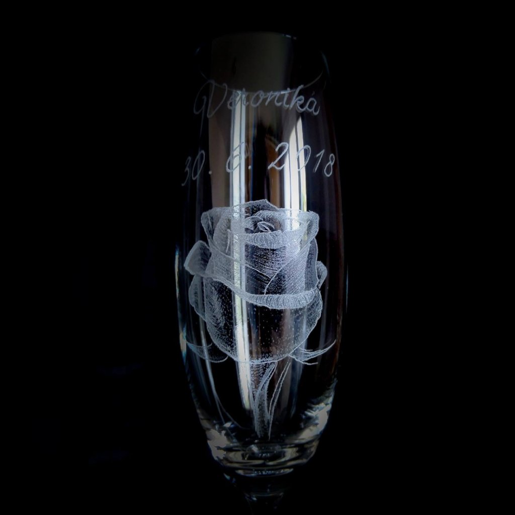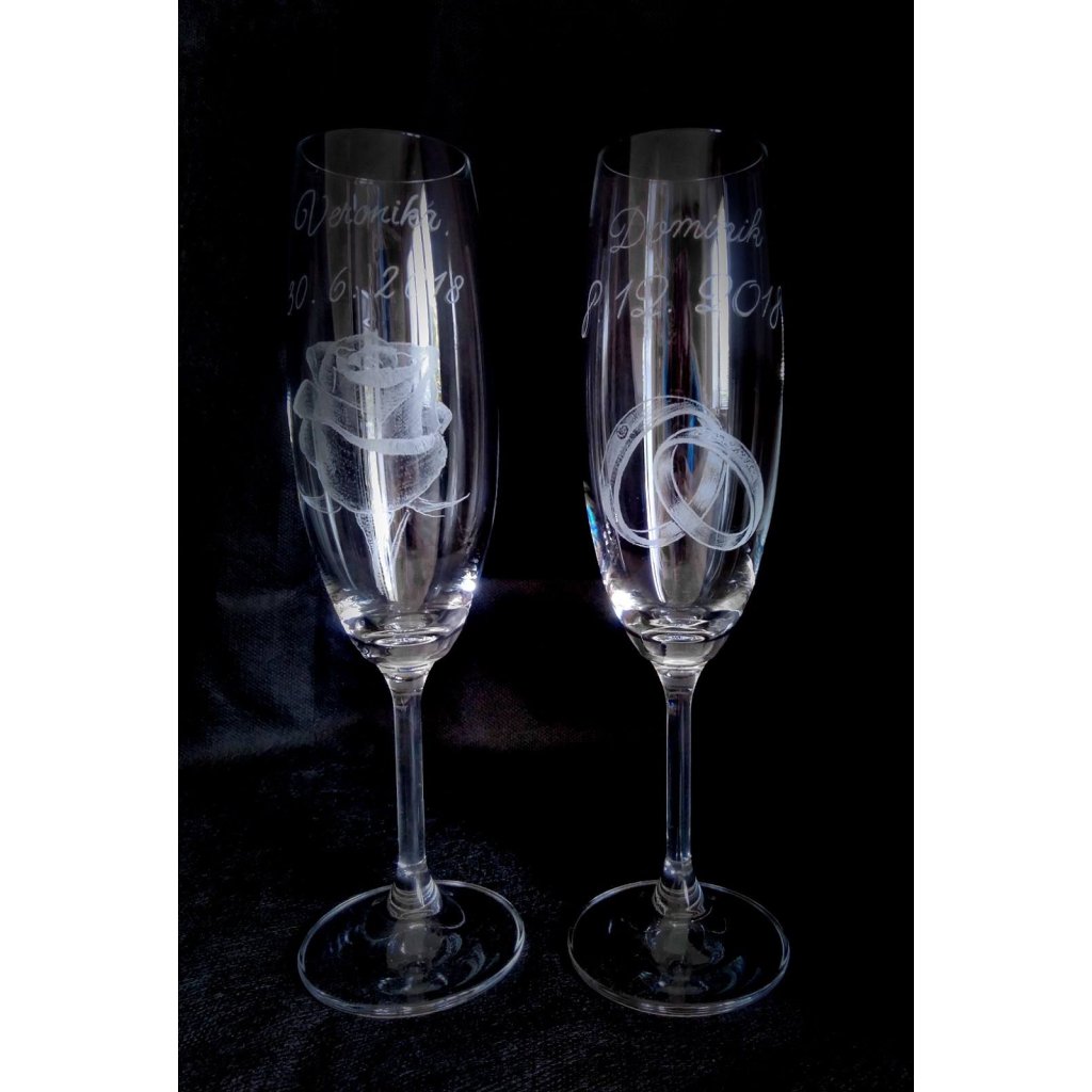 Na každou sklenici si můžete nechat vyrýt jiný obrázek, jména novomanželů, datum svatby, nebo přání do společného života, to záleží jen na vás.